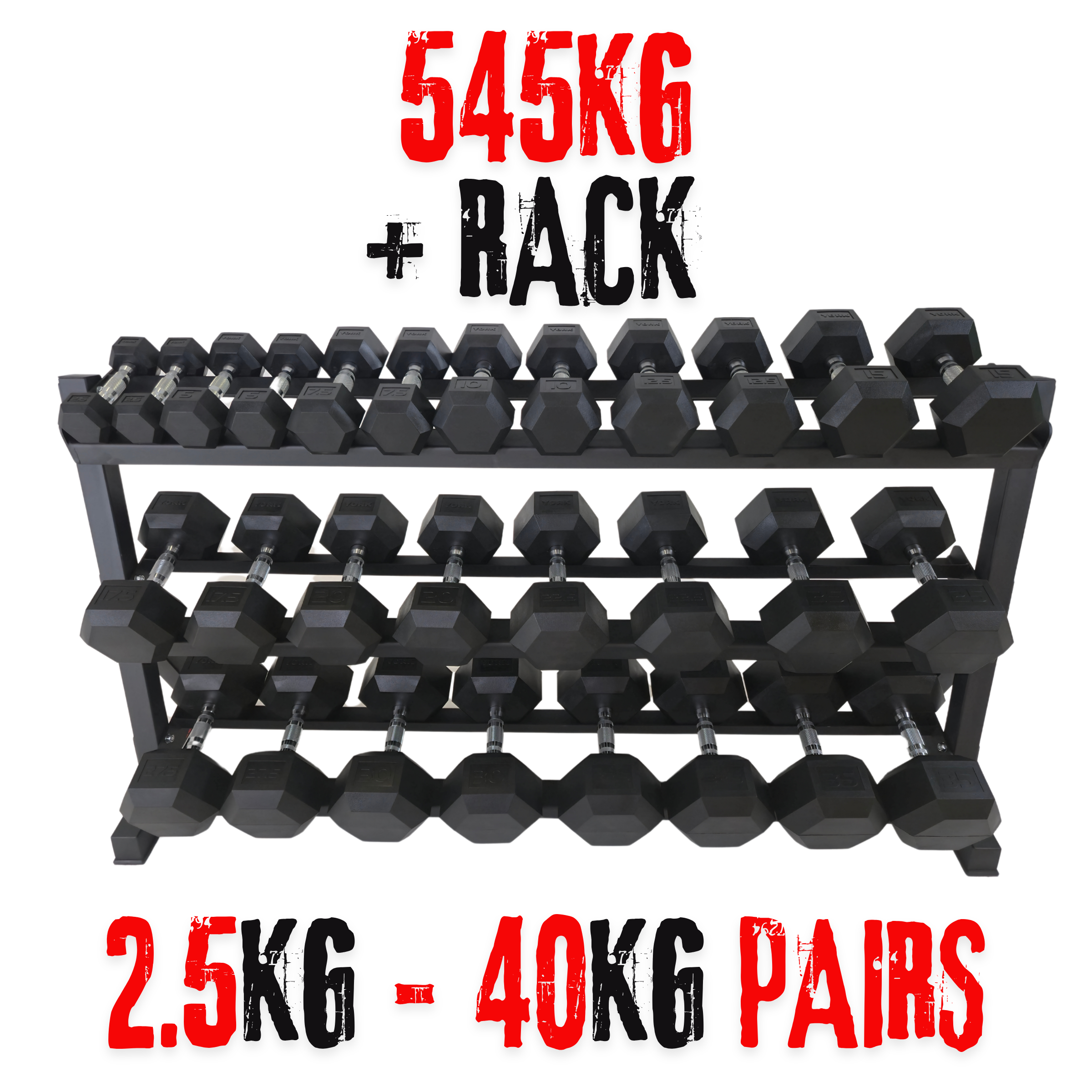 Complete Set: This 545KG bundle includes all 14 pairs of dumbbells from 2.5kg to 40kg, fully utilizing the rack capacity with no additional space for expansion.