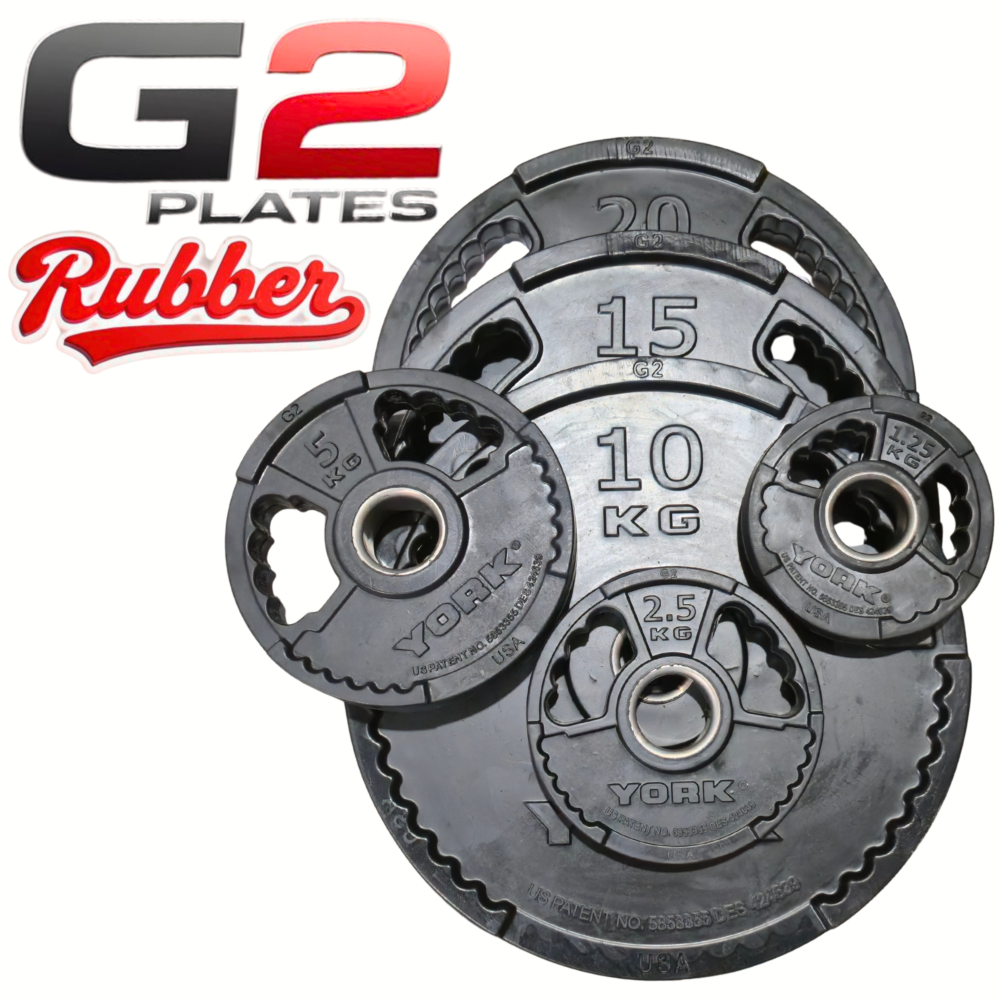 York Barbell G2 Rubber Plates are sold as singles. Mix and match the weights you need to create your perfect training setup: