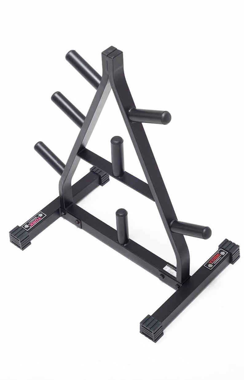 The York Barbell Olympic A Frame Plate Tree is the perfect space saving commercial solution for storing 2" Olympic cast weight plates. Designed to accommodate 7 cast plate sizes (1.25 KG, 2.5 KG, 5 KG, 10 KG, 15 KG, 20 KG, and 25 KG) the wide and sturdy feet ensure stability.
