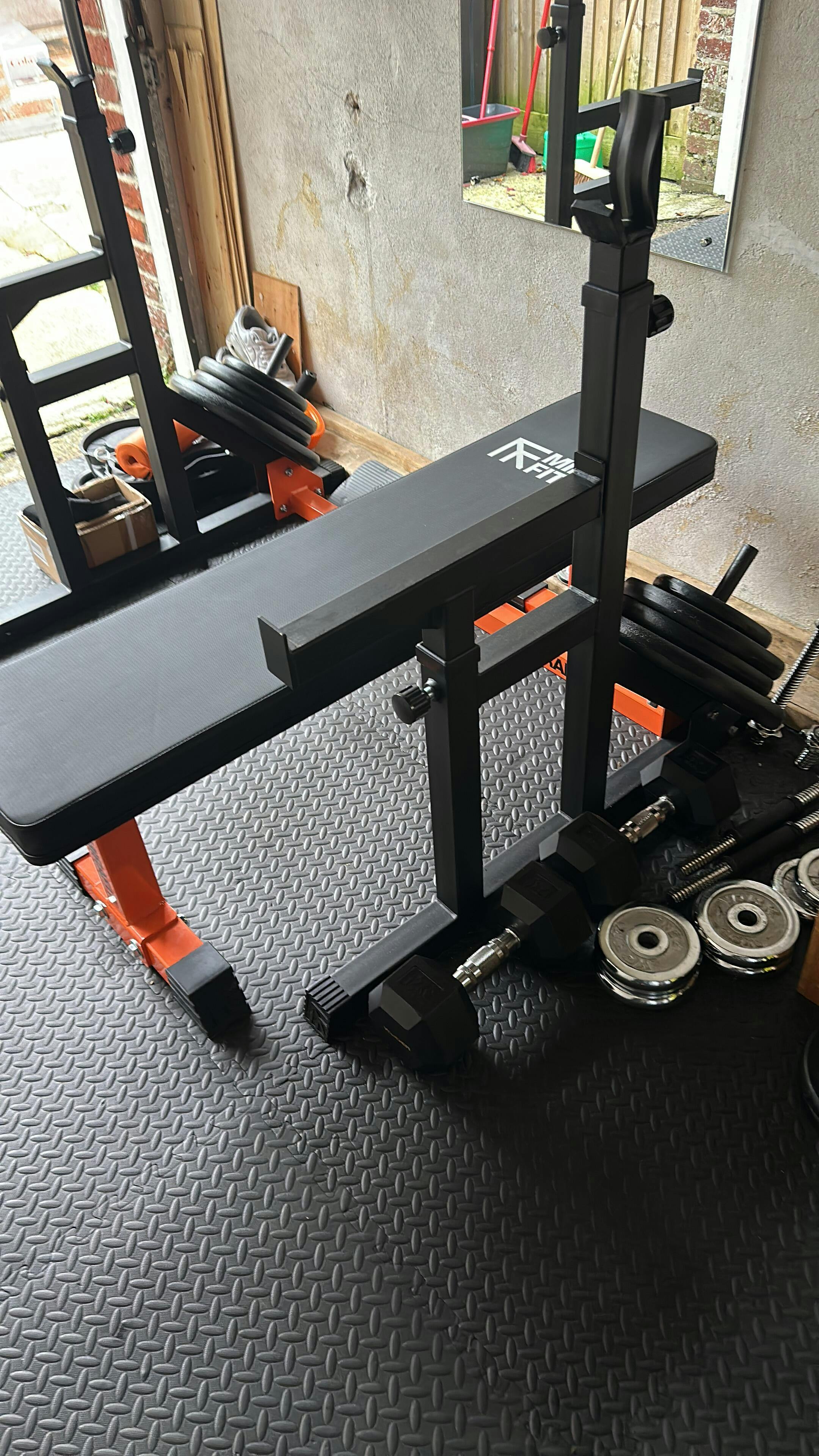 Image below shows the York Fitness 501 Bench loaded with York Fitness weight plates on the leg curl, fly arms and on the barbell.